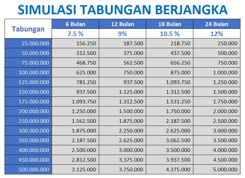 Pilihan jangka waktu: 6, 12, 18, dan 24 bulan